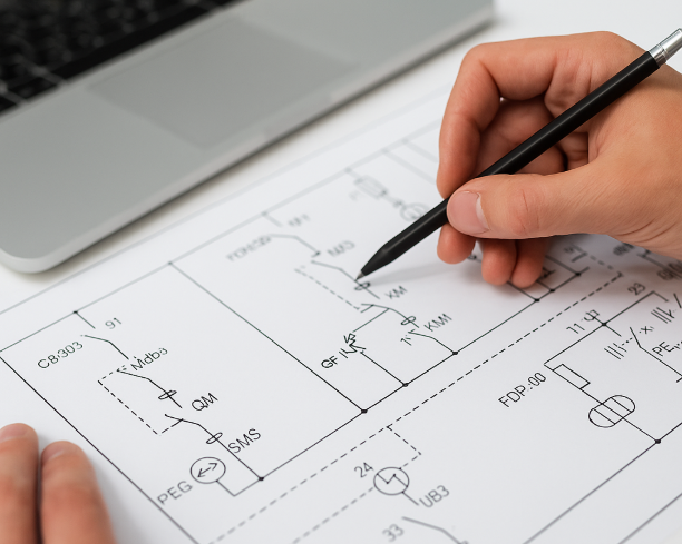 - Lập hồ sơ kỹ thuật – bản vẽ CAD/Single Line Diagram – theo tiêu chuẩn IEC, TCVN, hoặc yêu cầu riêng